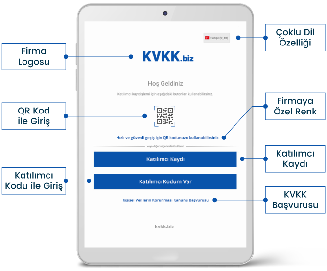 Paneller üzerinden «ziyaretçi» ve «toplantı katılımcısı» için ayrı ayrı hazırlanan aydınlatma metinleri gösterilir, gerekiyorsa açık rıza işlemi gerçekleştirilir.