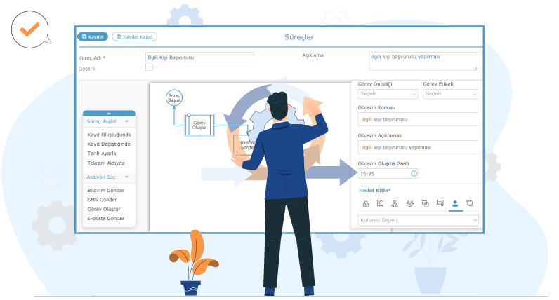 Süreç tetikleyici ve aksiyon seçimi ile süreçleri oluşturmak son derece basittir.